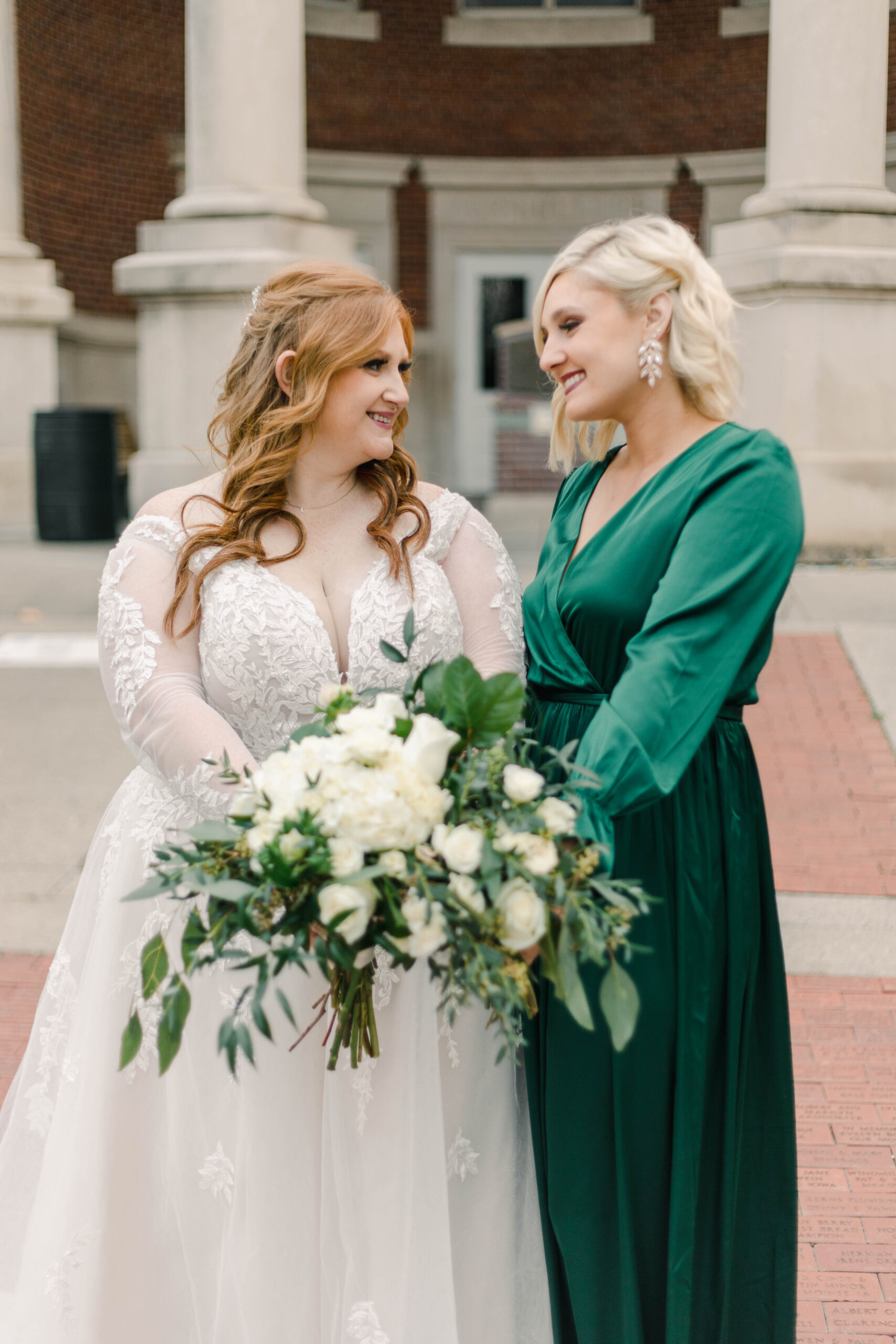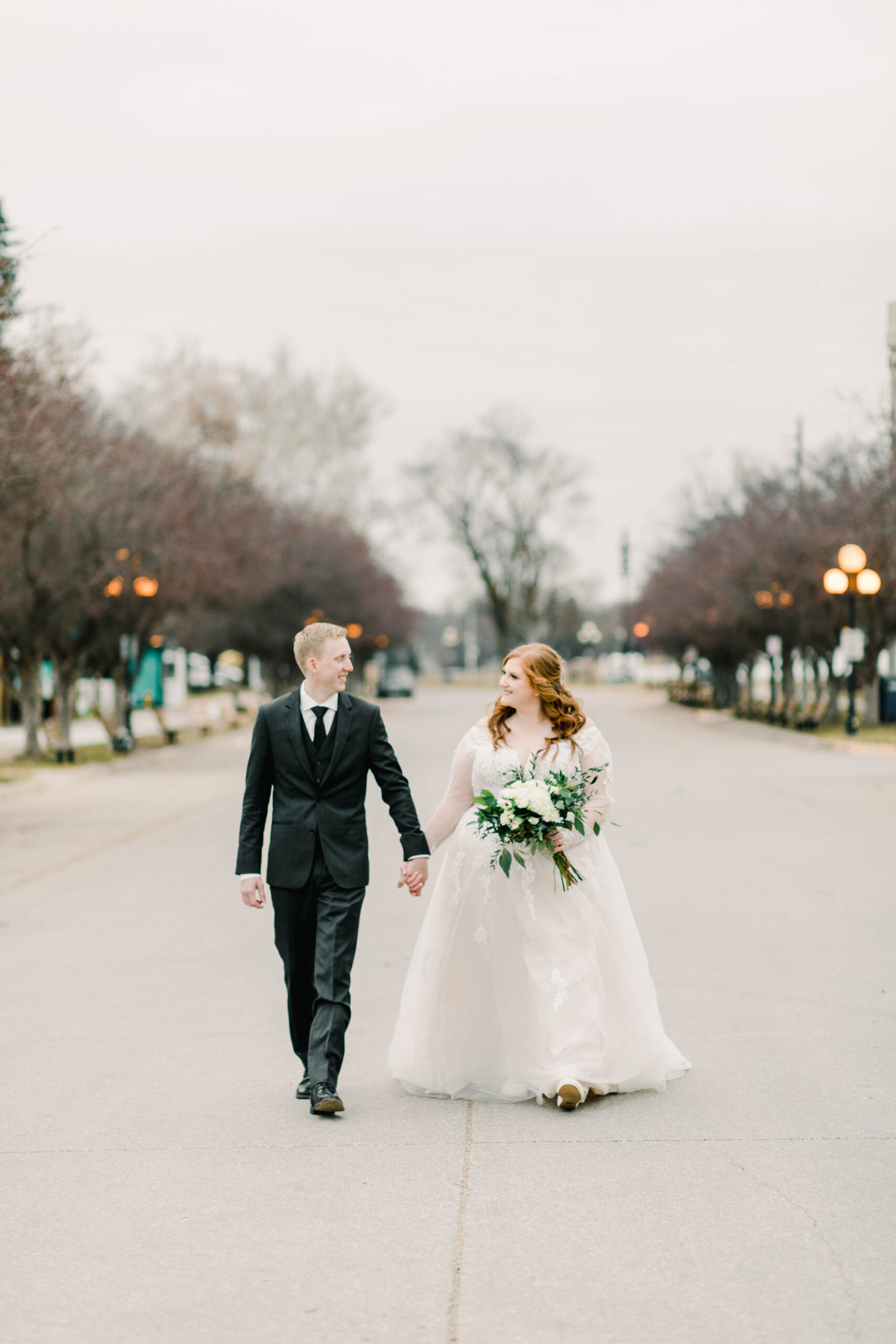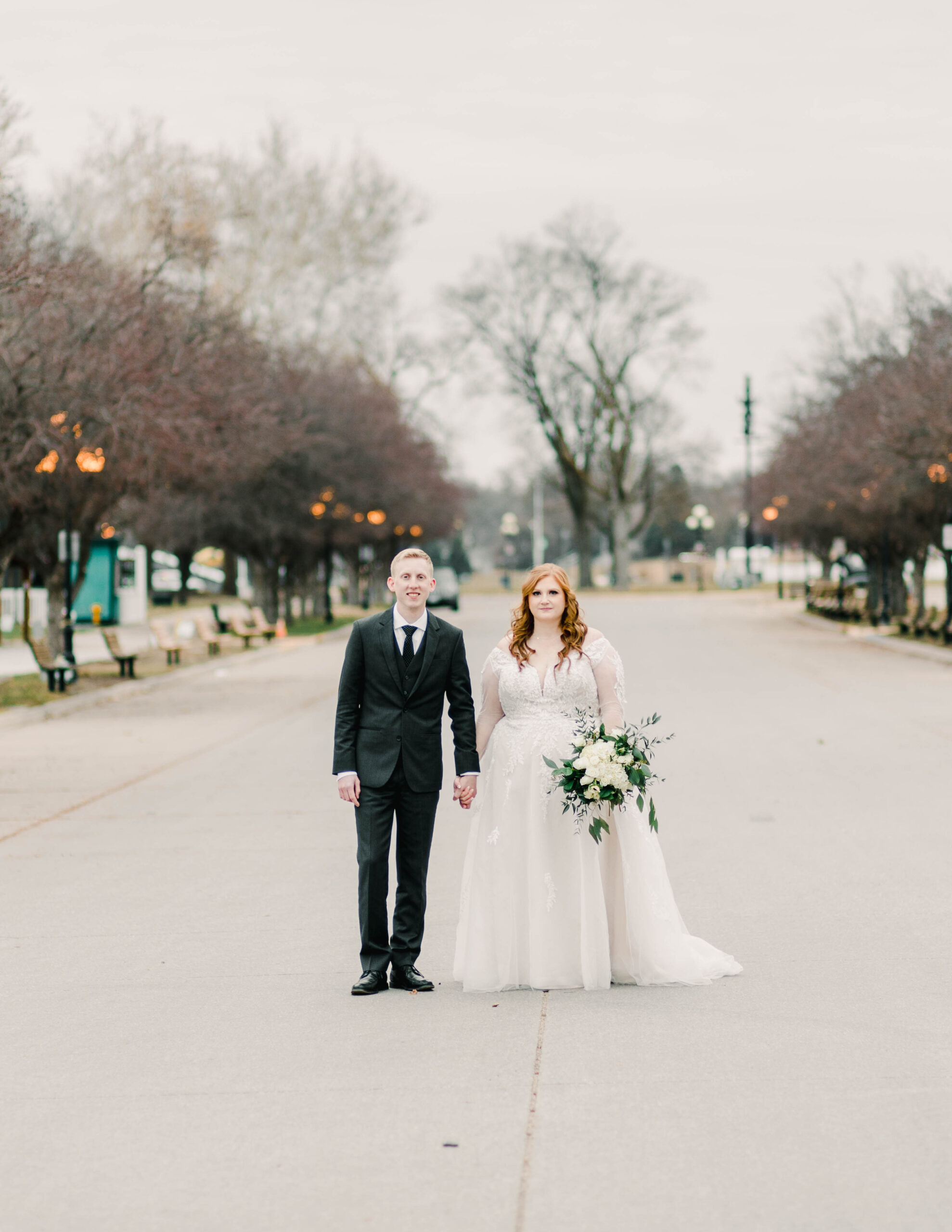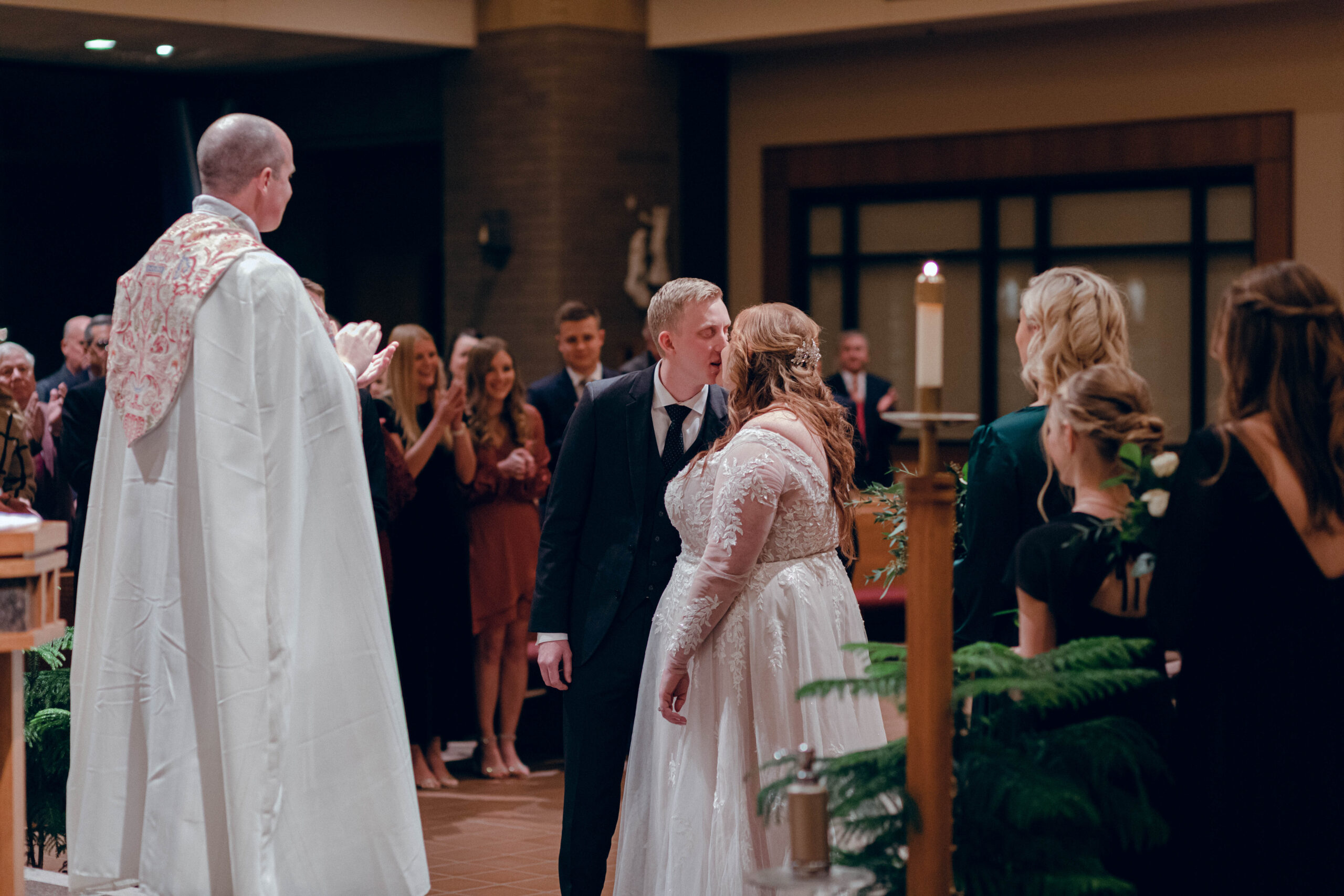 I adore Liz and Garrett! Liz is a longtime aquaintences from my hometown; Pleasantville, Iowa. When she reached out about shooting thier wedding and told me her vision, I knew we were the perfect fit for each other. Liz and Garrett had their wedding at the Iowa State Fairgrounds in December 2021. It was a jewel tone wedding full of fairytale details (Liz loves Disney). I always say, the beauty of the event is in the details, and this couple nailed the gorgeous details of their day. Liz wore a long sleeve lace gown, and her maid of honor wore an emereld green flowy dress. Their reception was adorned with antique candleaberas and a beautiful antique navy sofa at the head table. It was truly a fairytale wedding at the Iowa State Fairgrounds.