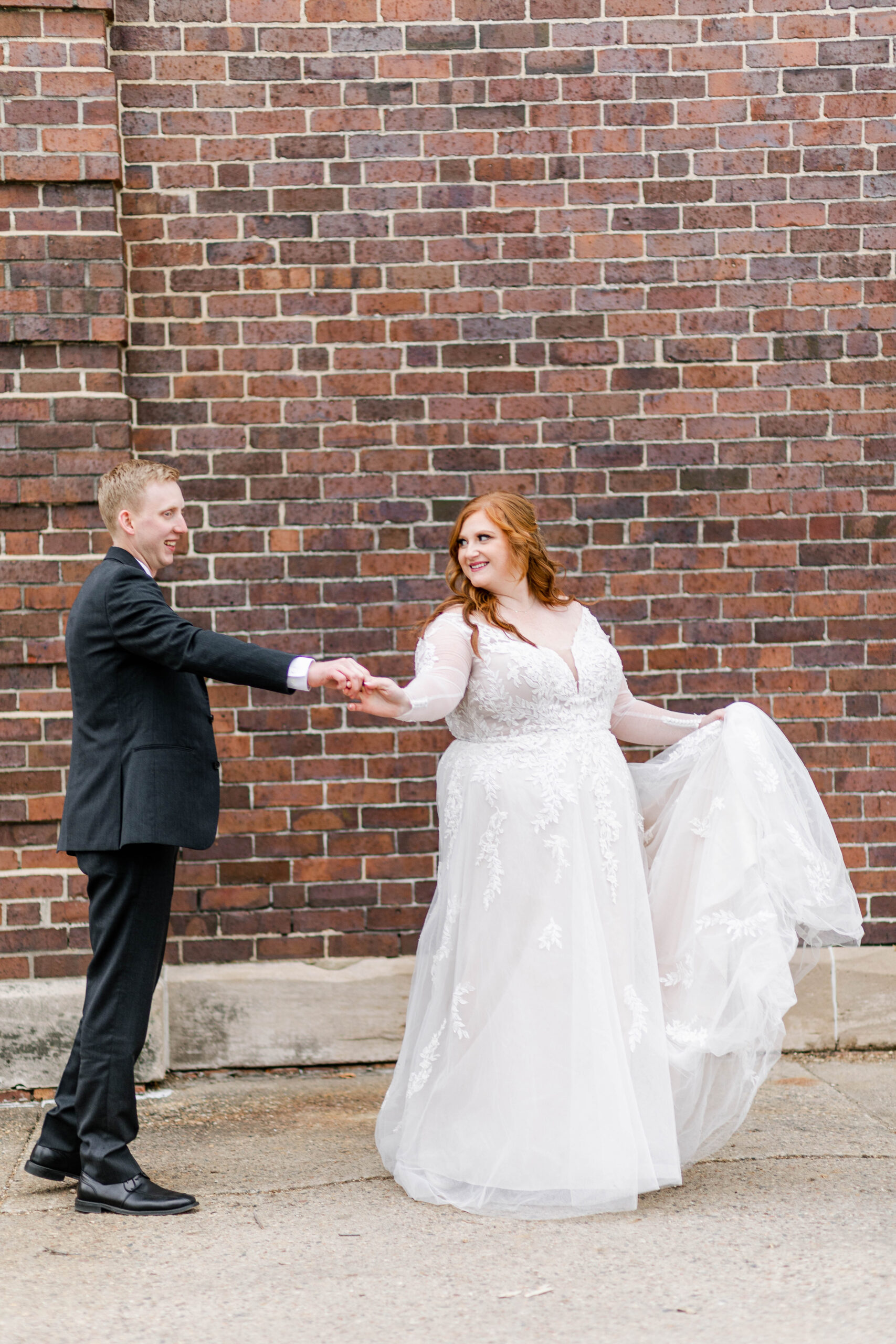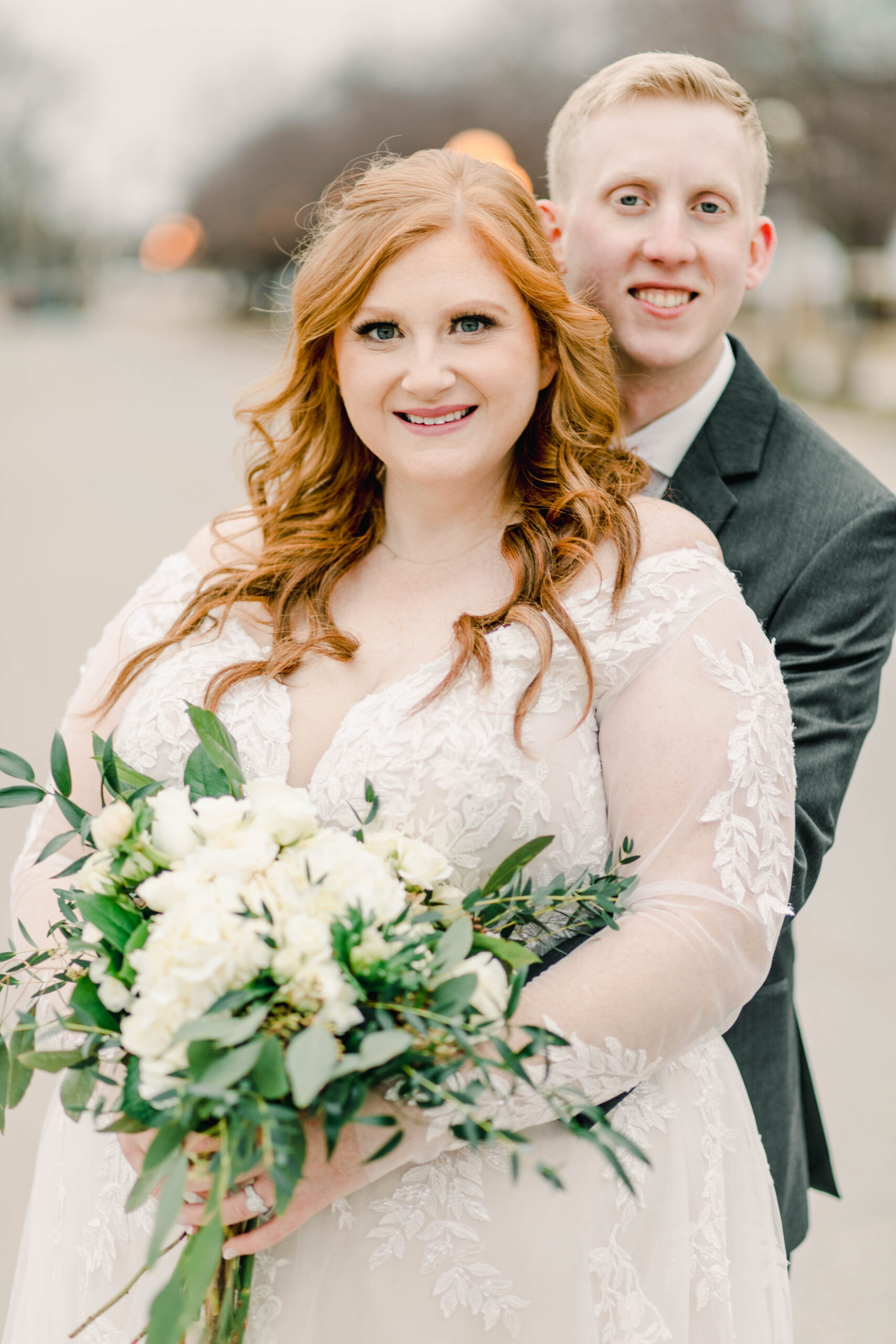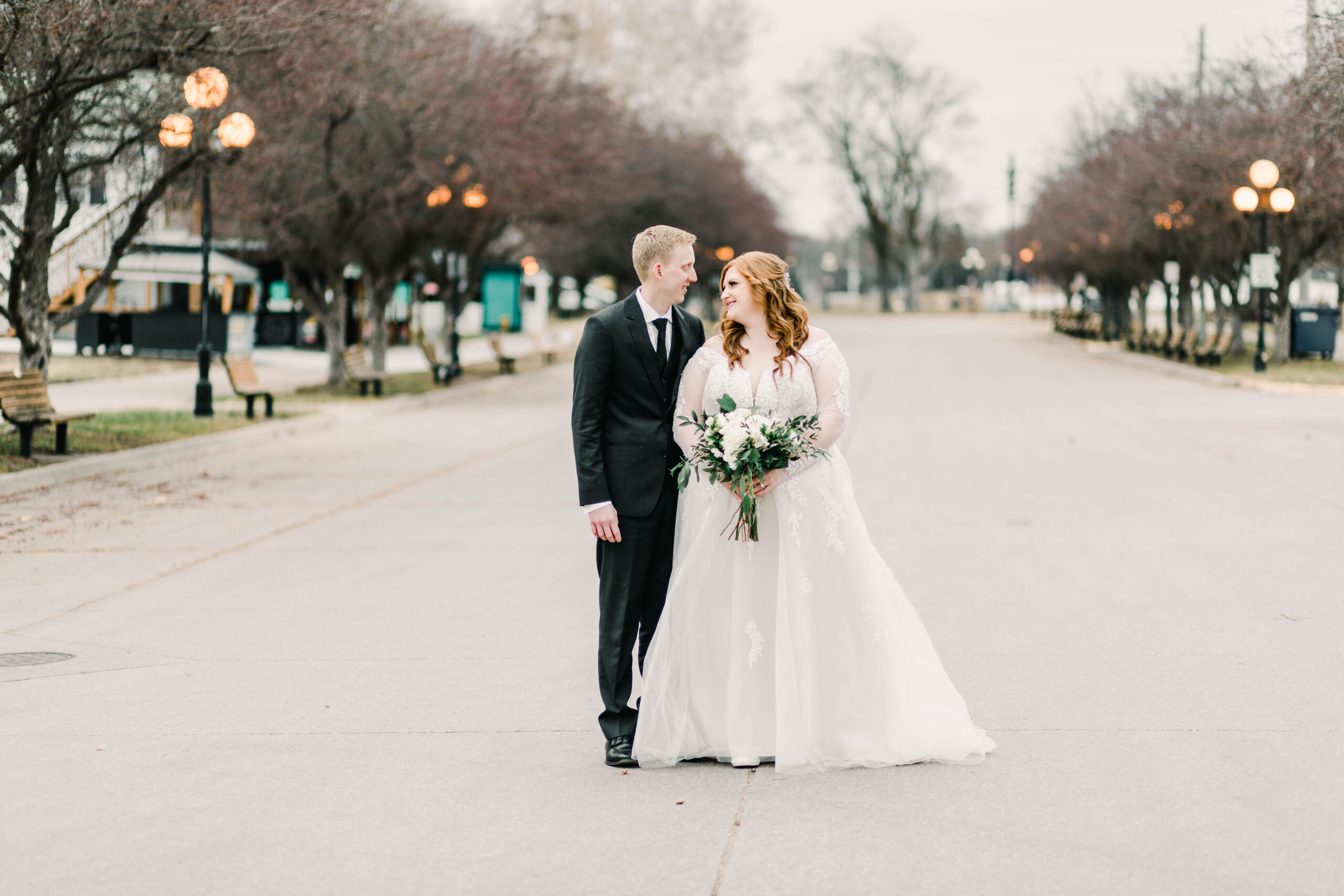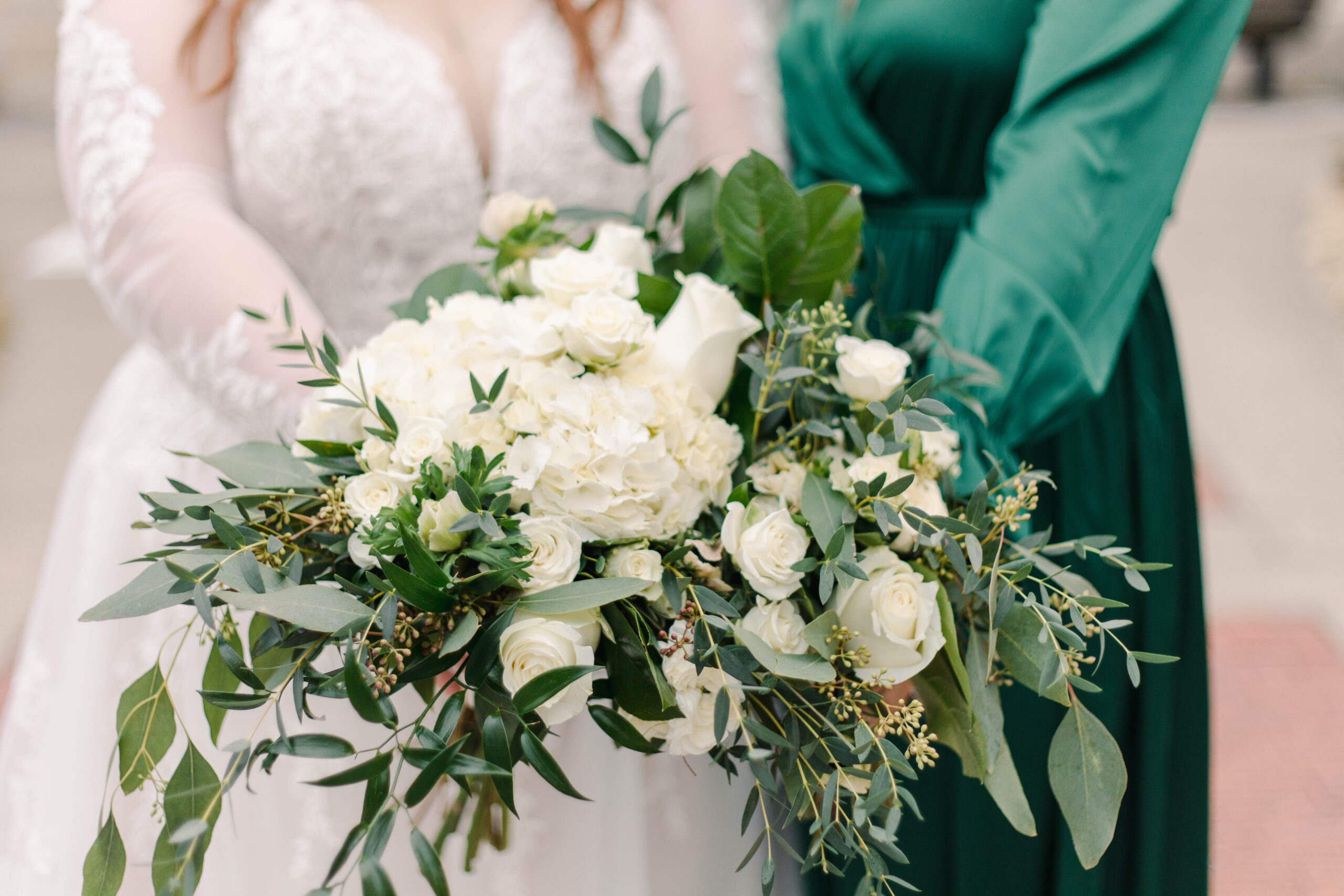 I adore Liz and Garrett! Liz is a longtime aquaintences from my hometown; Pleasantville, Iowa. When she reached out about shooting thier wedding and told me her vision, I knew we were the perfect fit for each other. Liz and Garrett had their wedding at the Iowa State Fairgrounds in December 2021. It was a jewel tone wedding full of fairytale details (Liz loves Disney). I always say, the beauty of the event is in the details, and this couple nailed the gorgeous details of their day. Liz wore a long sleeve lace gown, and her maid of honor wore an emereld green flowy dress. Their reception was adorned with antique candleaberas and a beautiful antique navy sofa at the head table. It was truly a fairytale wedding at the Iowa State Fairgrounds.